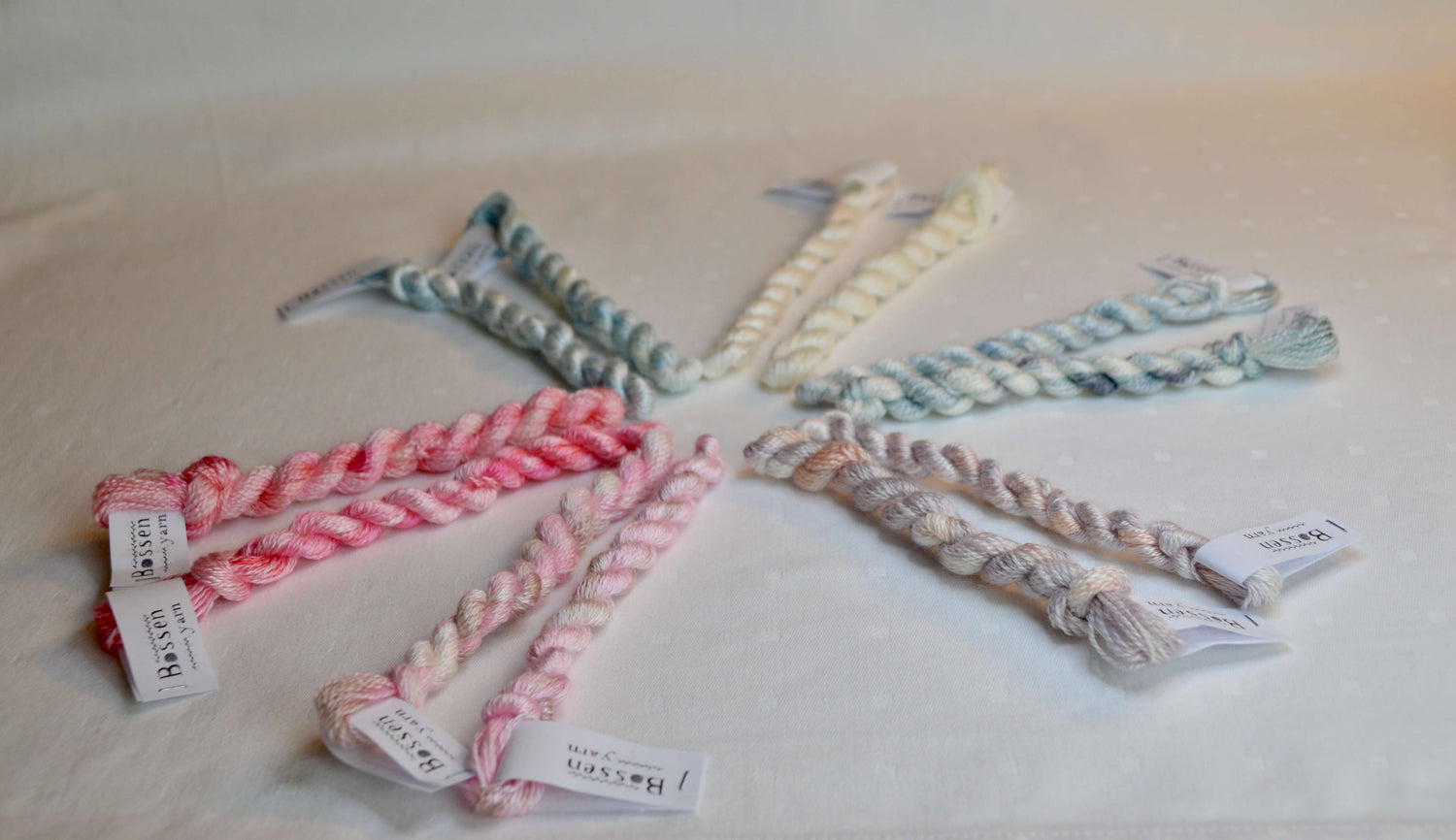 Opdag en verden af unikke farver og luksus med vores håndfarvede broderigarn. Skab kunst med karakter og holdbarhed med vores eksklusive garn. Vi har både en blanding af uld og silke samt et broderigarn i den 100% luksuriøse silke.Lad din kreativitet blomstre med denne ekstraordinære kombination af luksus og skønhed.