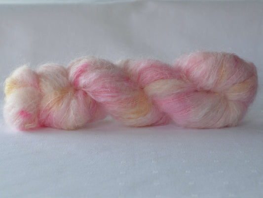 Bossen Yarn Fat Mohair er et eksklusivt, håndfarvet garn bestående af 78% Kid Mohair, 13% Merino og 9% Nylon. Denne blanding sikrer uovertruffen blødhed, styrke og holdbarhed. Den tykke børstede Mohair er enormt blød og har en rigtig god fylde.